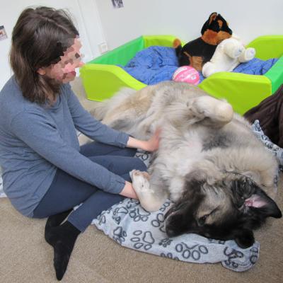 • J'interviens accompagnée de mes chiens, spécifiquement formés pour ce type de séance.