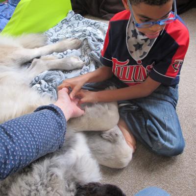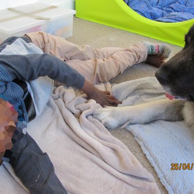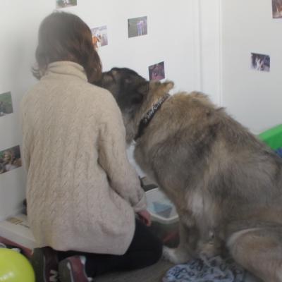"J’étais contente de voir Ishka. J’ai aimé faire des câlins et des massages à Ishka. J’ai tout aimé." (A.)